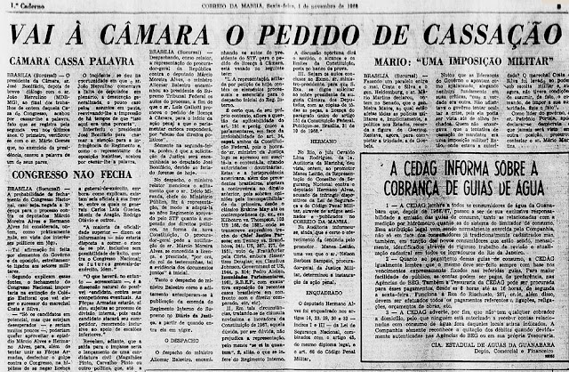 No dia 2 de outubro, o ministro da Justiça, Gama e Silva, que era mais radical do que muitos militares, pediu ao Procurador Geral da República, Décio Meirelles de Miranda, que encaminhasse uma representação ao Supremo Tribunal Federal pedindo a suspensão dos direitos políticos do deputado.
